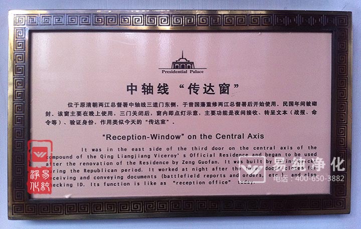 南京總統府傳達窗,主要為傳遞文件和信息,為士兵守衛