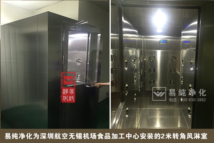 也許我們很想了解一下,航空食品的生產(chǎn)是否和普通企業(yè)的生產(chǎn)類似,是否也有著嚴(yán)格的產(chǎn)品質(zhì)量和衛(wèi)生管理呢。日前,我司為深圳航空公司無(wú)錫碩放國(guó)際機(jī)場(chǎng)深航食品加工中心安裝了2臺(tái)風(fēng)淋室。所有工作人員要進(jìn)入食品加工中心作業(yè)之前都需要先經(jīng)過(guò)更衣室,洗手消毒、然后進(jìn)入風(fēng)淋室進(jìn)行吹淋,在吹淋步驟完成之后方可進(jìn)入到車間,這樣用風(fēng)淋室強(qiáng)制吹淋,將員工身上表面脫落的毛發(fā)、灰塵吹落吸收掉,防止和杜絕將污染源帶入到食品加工中心。
