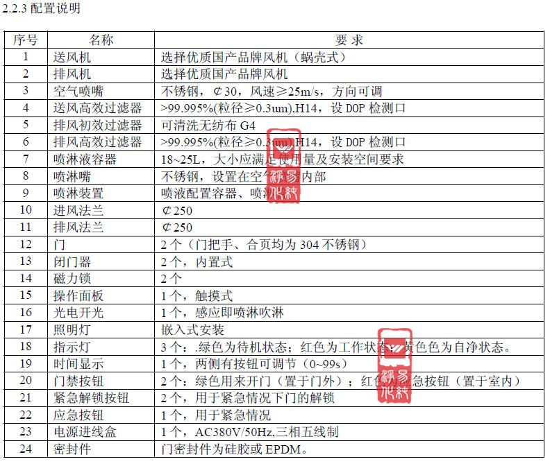 3.4采用壓縮空氣為動力源;水淋室配潔凈照明燈,使照度達(dá)到400勒克斯。